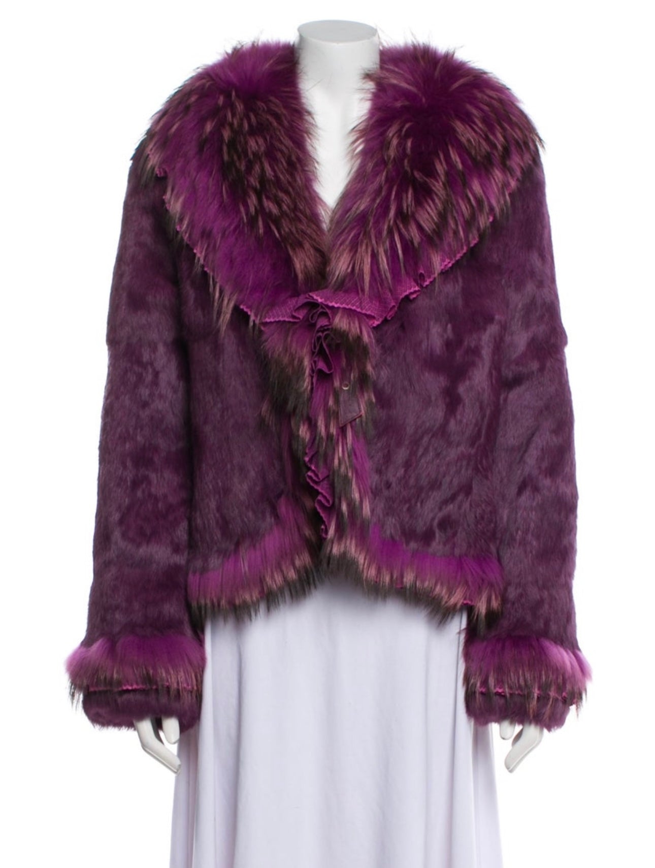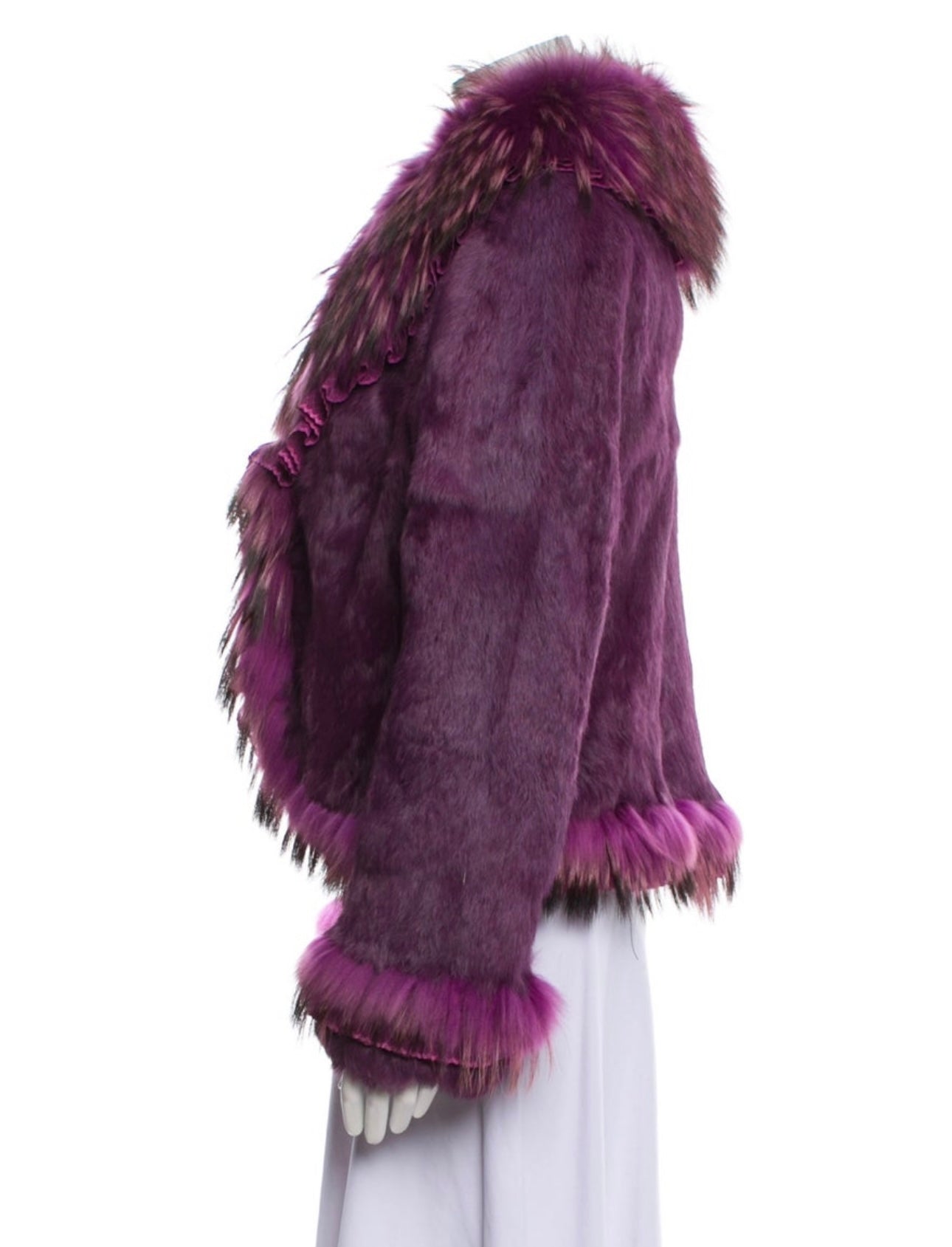 Purple Leather Faux Fur Coat